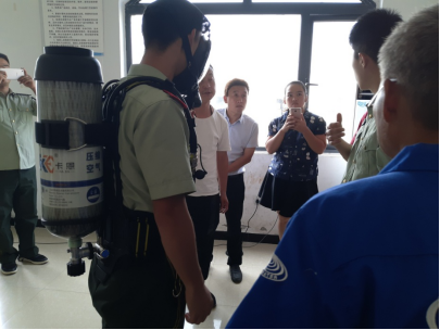 培訓中,通過理論講解、現場示范、手把手教學等多種方式,消防官兵耐心地為每位參訓員工講解空氣呼吸器正確佩戴使用方法。大家積極參與、認真學習、實時提問,逐步掌握了救生器材的使用技巧。